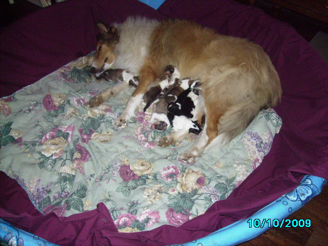 Lace is Duke and Brandy's daughter. At about one year of age, Lace came back to live with us. She had broken her rear leg and was in need of medical attention. She is very intelligent, loving and a great mother!