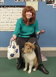 Rollingwoods Bobbie w trainers Jackie and Sherrie. Betty with Bobbie at graduation class.